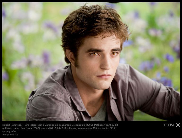 Para interpretar o vampiro do açucarado Crepúsculo (2008), Pattinson ganhou $2 milhões. Já em Lua Nova (2009), seu salário foi de $12 milhões, aumentando 500 por cento.